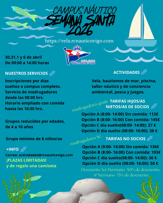 Es la oportunidad ideal para que los más jóvenes disfruten del entorno privilegiado de la Ría de Vigo, aprendan los secretos de la navegación, fomenten el compañerismo y, sobre todo, se diviertan practicando deportes como vela, piscina, pesca, talleres y muchos más.